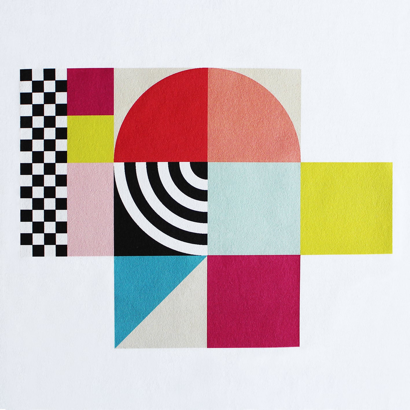 カラフルな幾何学模様と黒のバランスで、スタイリッシュな印象です。