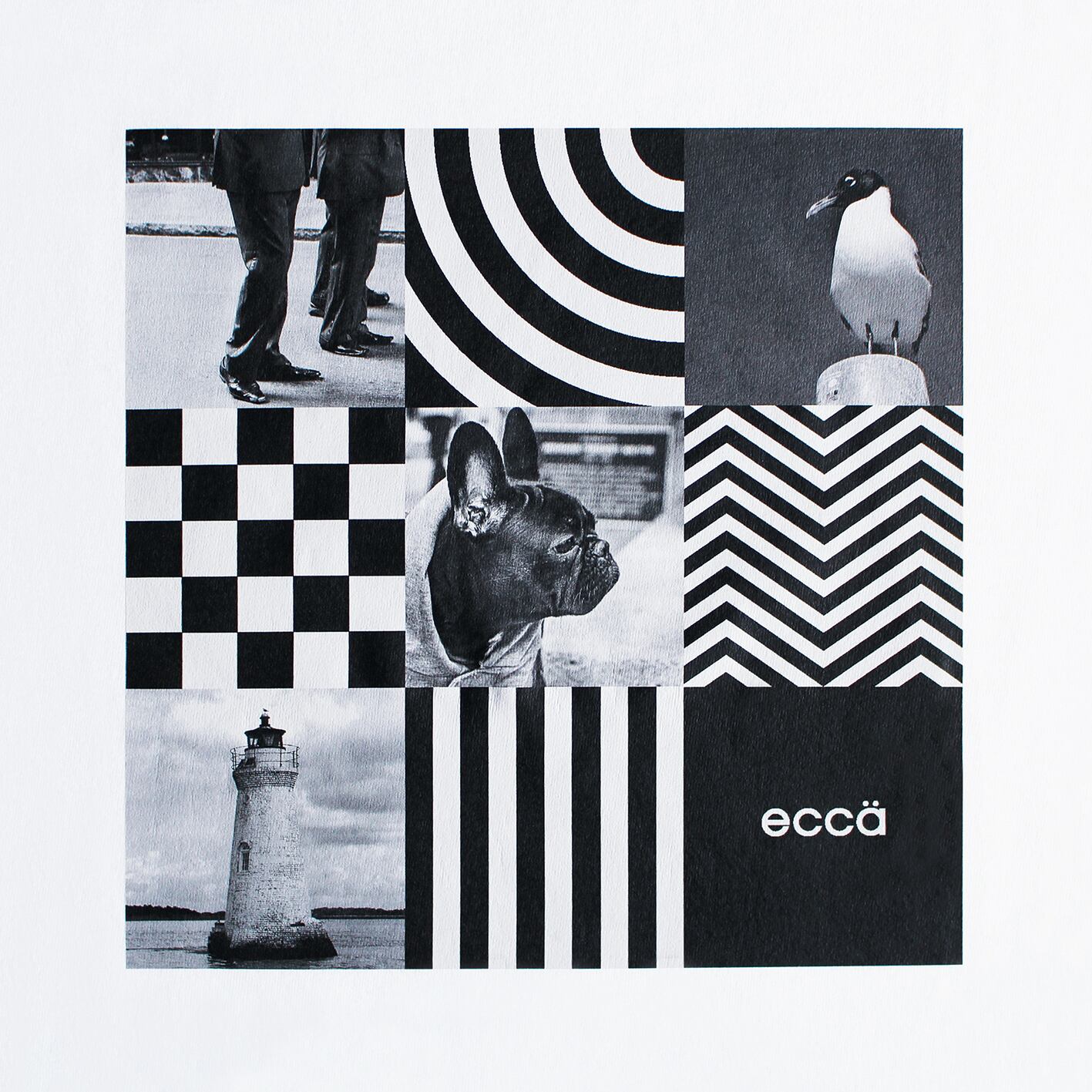 モノクロ写真と幾何学模様を組み合わせることで、クールでスタイリッシュな印象です。