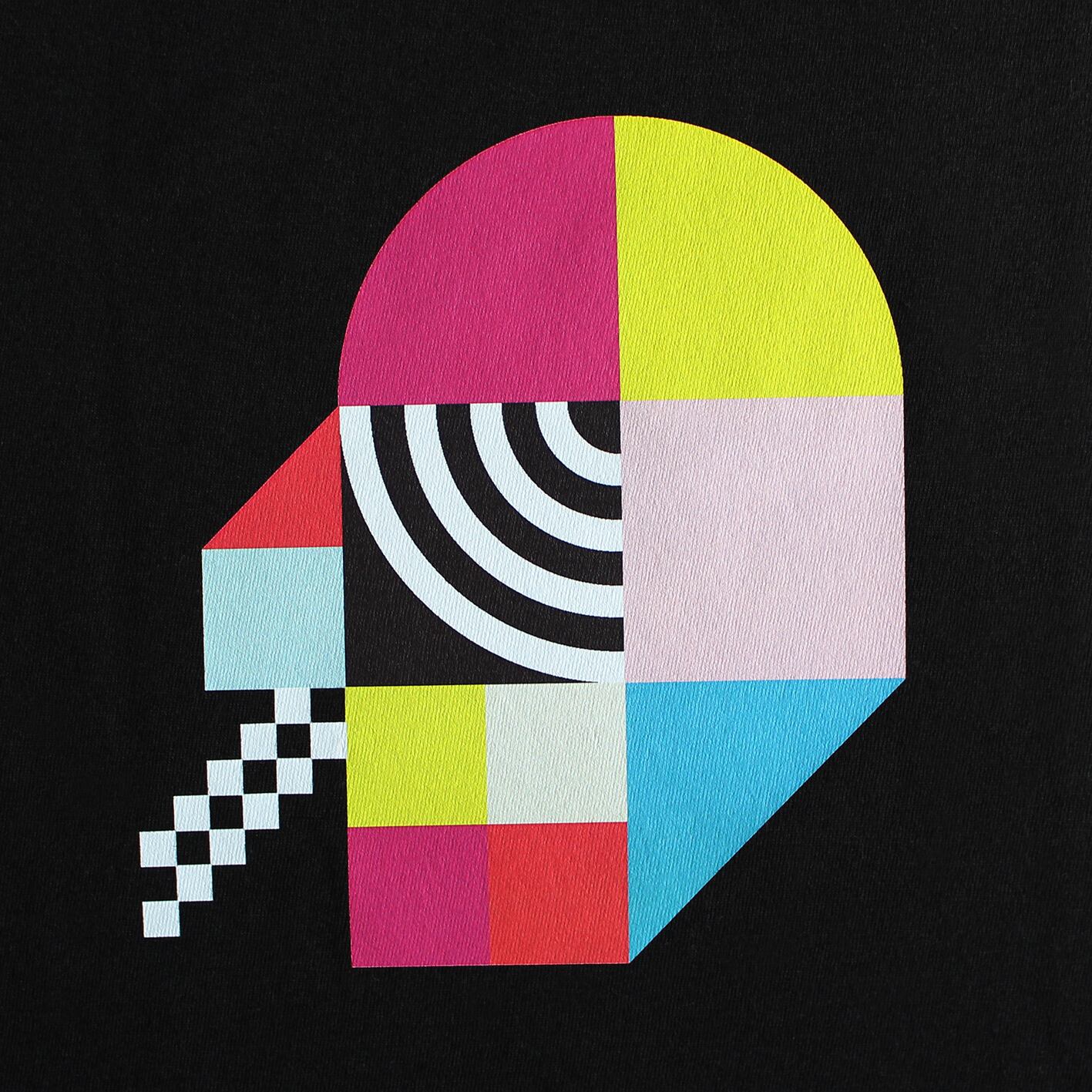 カラフルな幾何学模様と黒のバランスで、スタイリッシュな印象です。