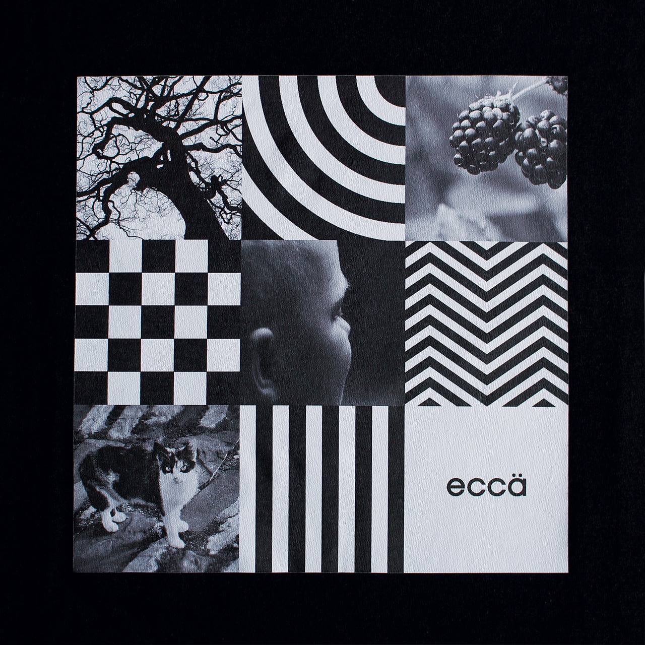 モノクロ写真と幾何学模様を組み合わせることで、クールでスタイリッシュな印象です。