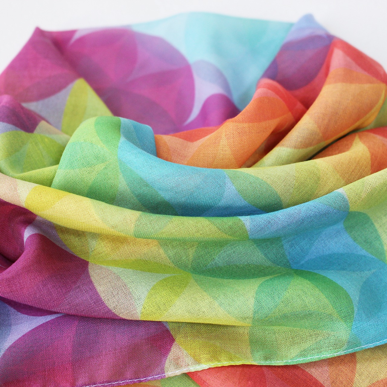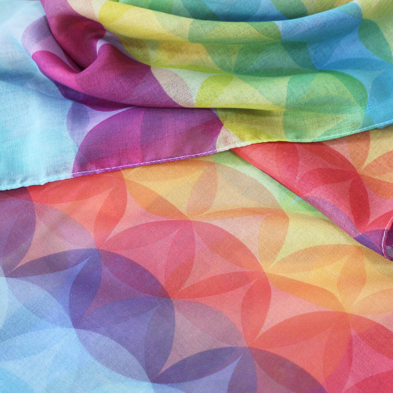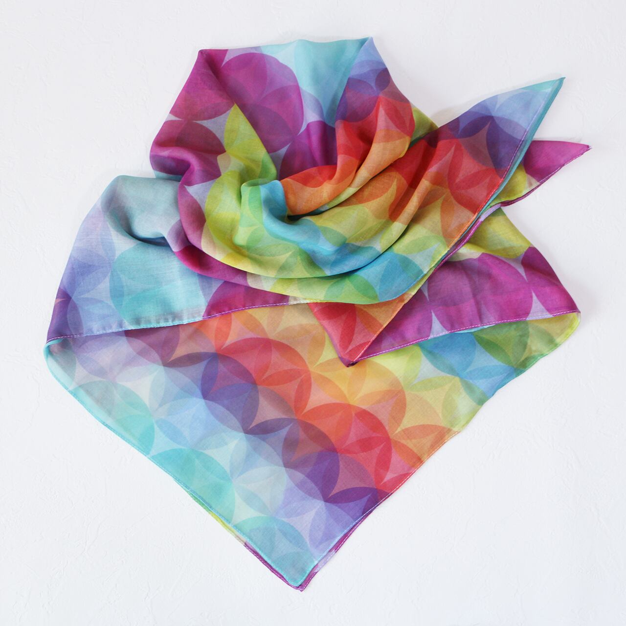 神聖幾何学(フラワーオブライフ)の虹色の大判スカーフです。