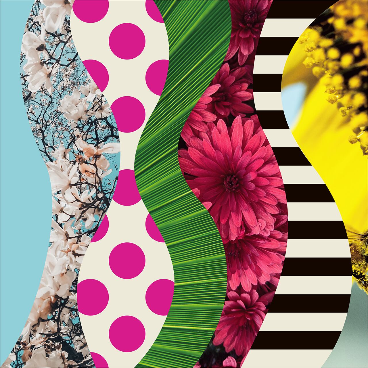 鮮やかな世界観を写真と幾何学模様で大胆に表現しています。
